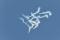 The high show continues with a single T-50 performing a loop thrown in the middle of a slow pass. The aircraft reform and fly a downward bomb burst followed with a synchronized continuous roll and an eight-point roll. A single ship flies a screw roll, and the formation follows with an echelon loop. Two aircraft perform a calypso pass, and a single aircraft performs an Apache roll.